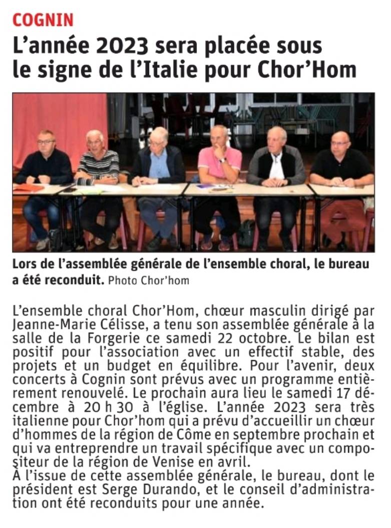 Réception du chœur Coro Delphum ( Lac de Côme) les 6-7 et 8 octobre 2023 - Cognin