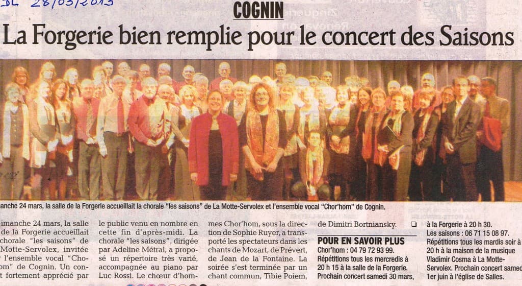 Concert en commun avec la Chorale "les saisons" de la Motte Servolex en mars 2013