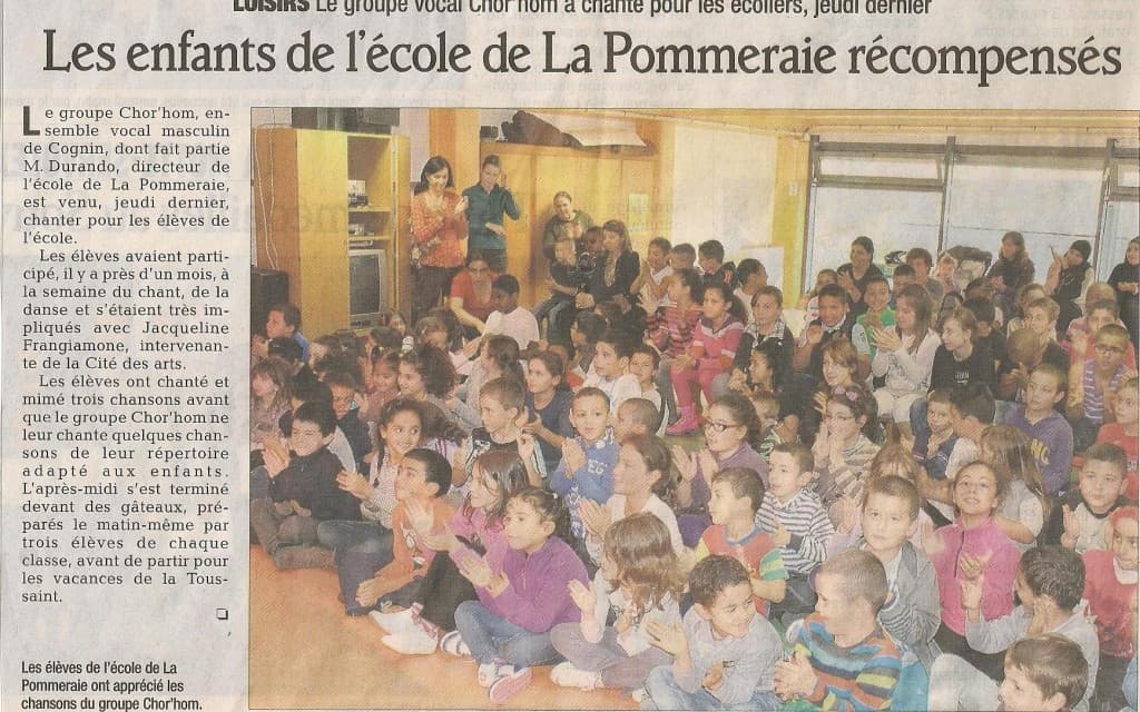 Chor'hom chante pour les enfants d'une école de Chambéry en novembre 2012